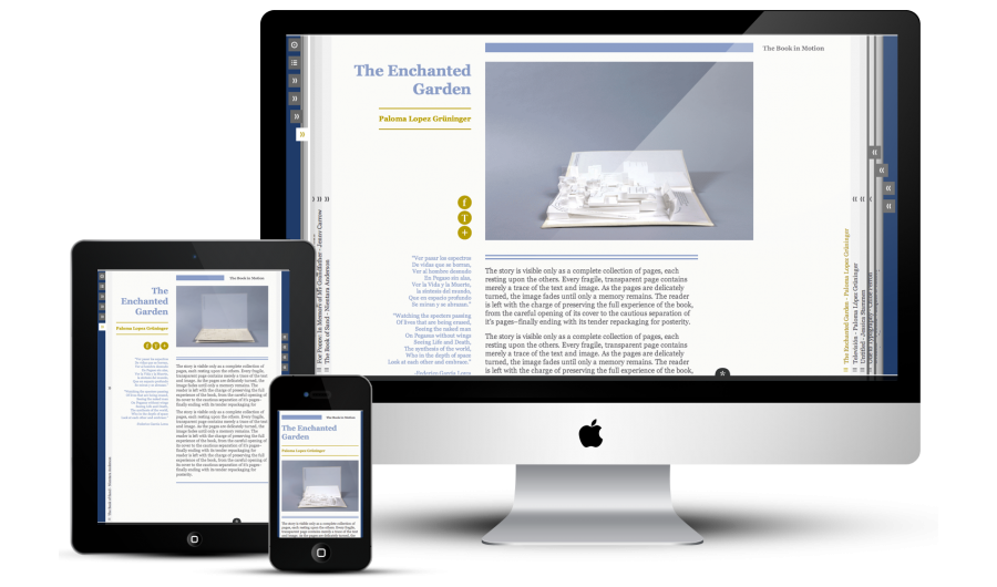 The book in motion is fully responsive from larger screens down to a mobile version without JavaScript.